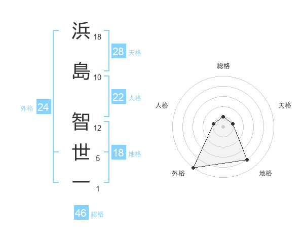 浜島 智世一さんを姓名の画数から五運を鑑定