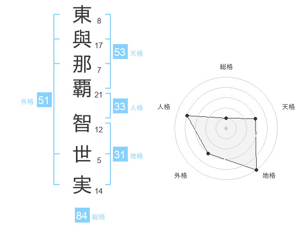 東與那覇 智世実さんを姓名の画数から五運を鑑定