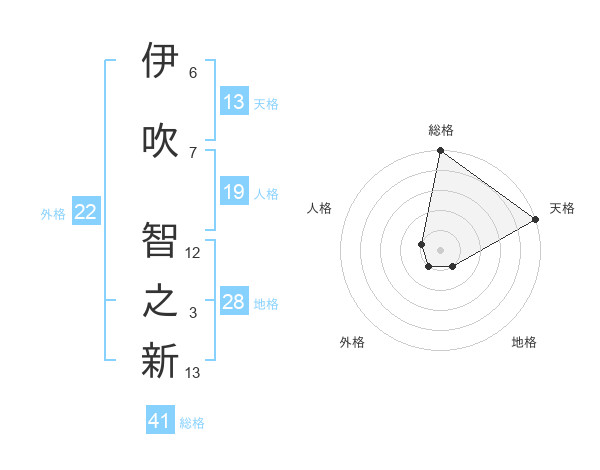 伊吹 智之新さんを姓名の画数から五運を鑑定