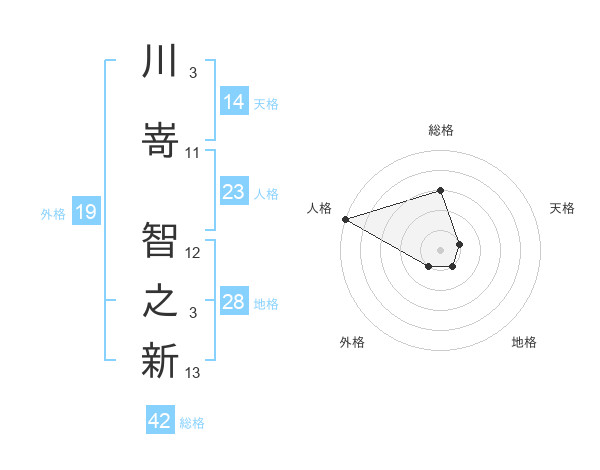 川嵜 智之新さんを姓名の画数から五運を鑑定