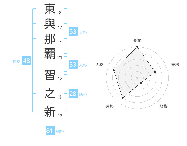 東與那覇 智之新さんの総格は81画の5点!