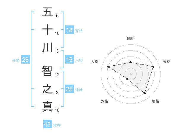 五十川 智之真さんの地格は25画の4点!