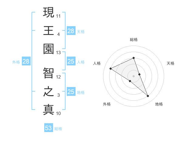 現王園 智之真さんを姓名の画数から五運を鑑定