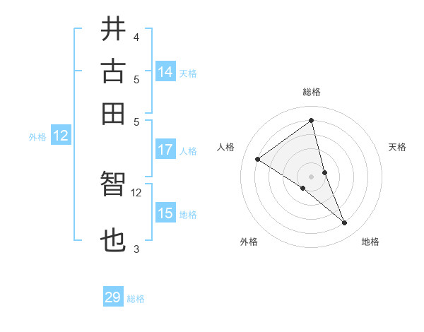 井古田 智也さんの総格は29画の4点!