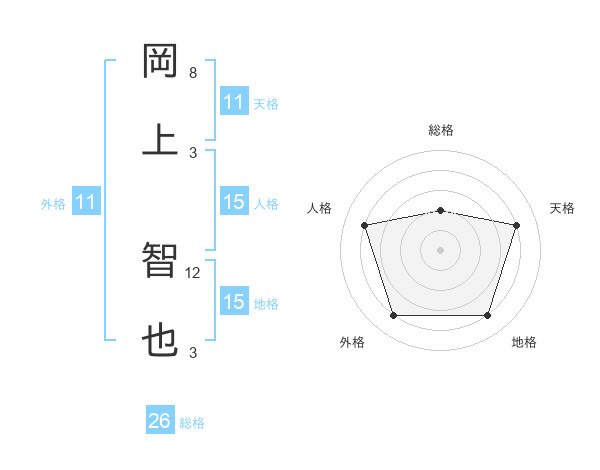 岡上 智也さんの総格は26画の2点!