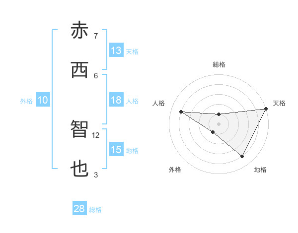 赤西 智也さんの天格は13画の5点!