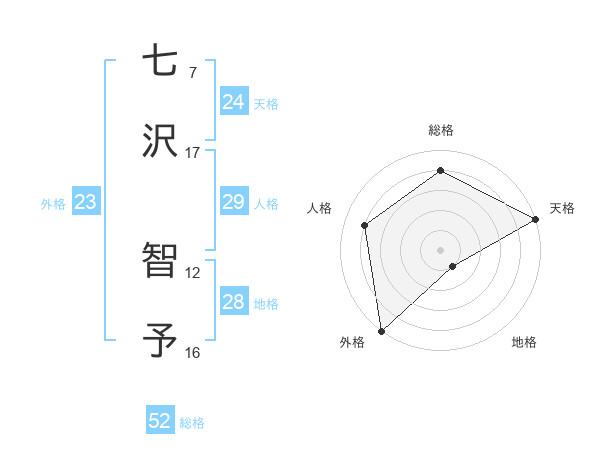 七沢 智予さんの天格は24画の5点!