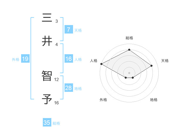 三井 智予さんの総格は35画の4点!