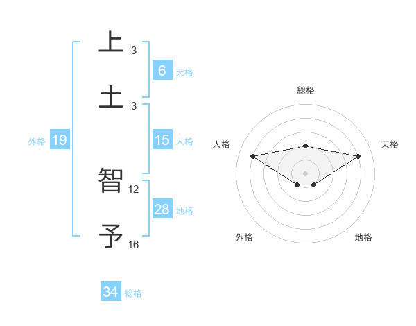 上土 智予さんの総格は34画の2点!
