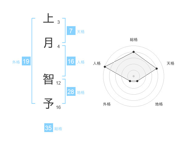 上月 智予さんの天格は7画の4点!