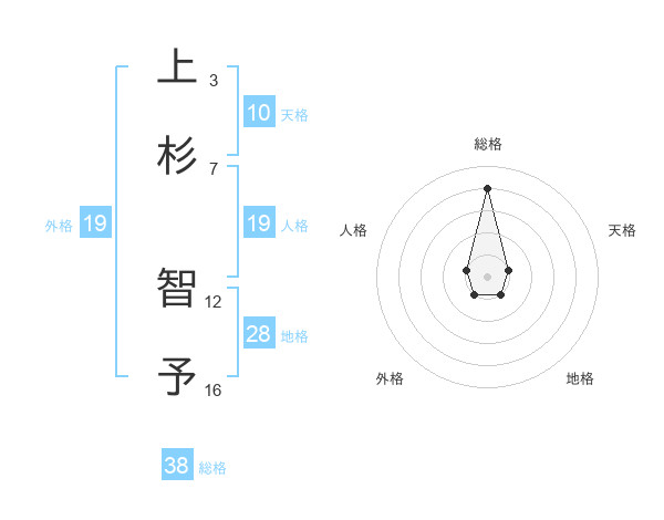 上杉 智予さんの総格は38画の4点!
