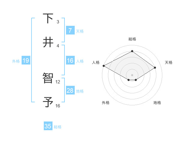 下井 智予さんの総格は35画の4点!