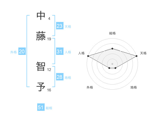 中藤 智予さんの総格は51画の3点!