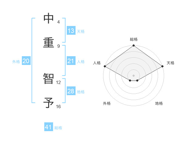 中重 智予さんの人格は21画の5点!