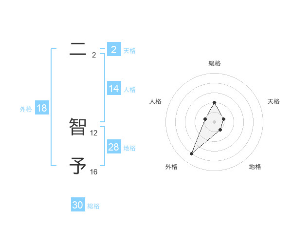 二 智予さんの外格は18画の4点!