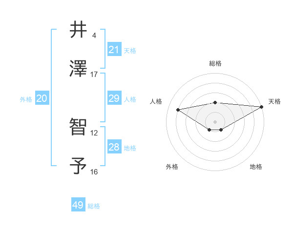 井澤 智予さんの総格は49画の2点!