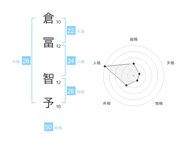 倉冨 智予さんの天格は22画の1点!
