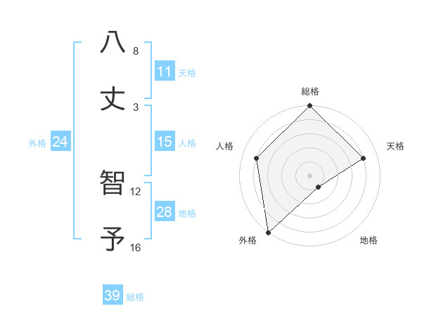 八丈 智予さんの外格は24画の5点!