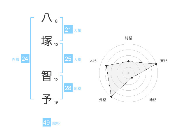 八塚 智予さんの外格は24画の5点!