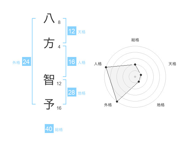 八方 智予さんの外格は24画の5点!