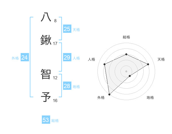 八鍬 智予さんを姓名の画数から五運を鑑定