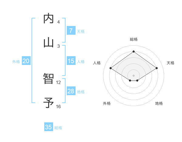 内山 智予さんの総格は35画の4点!
