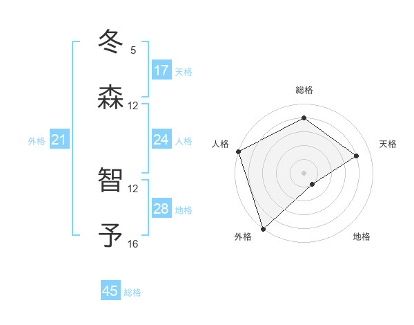 冬森 智予さんの天格は17画の4点!