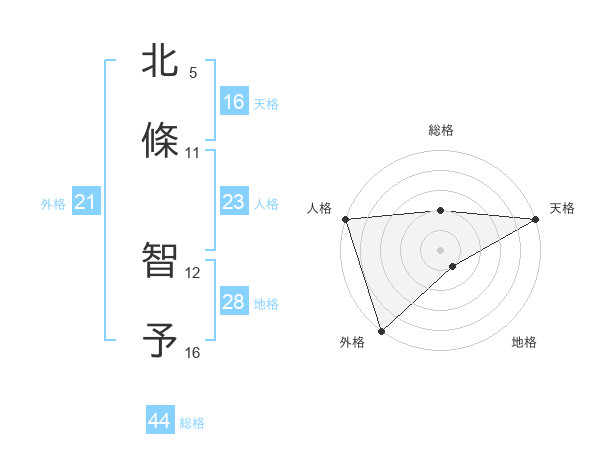 北條 智予さんの外格は21画の5点!