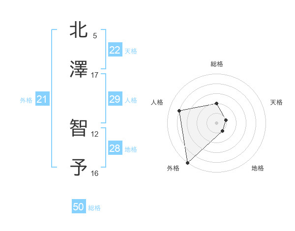 北澤 智予さんの総格は50画の2点!