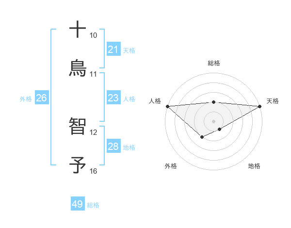 十鳥 智予さんを姓名の画数から五運を鑑定
