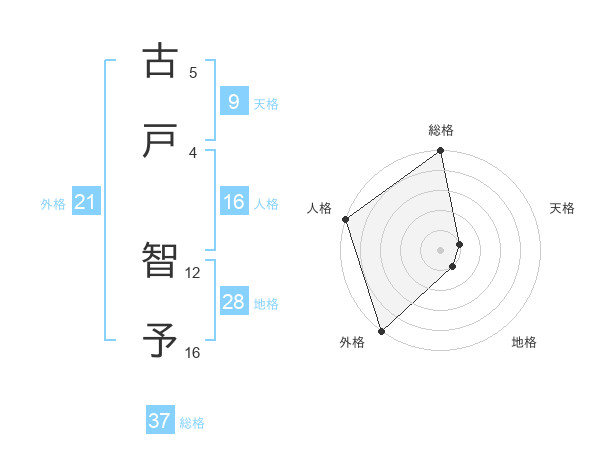 古戸 智予さんの総格は37画の5点!