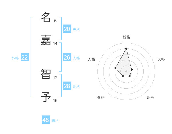 名嘉 智予さんの天格は20画の1点!
