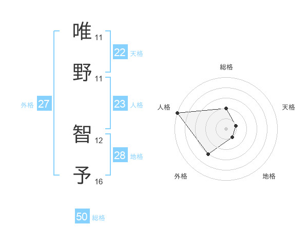 唯野 智予さんの総格は50画の2点!