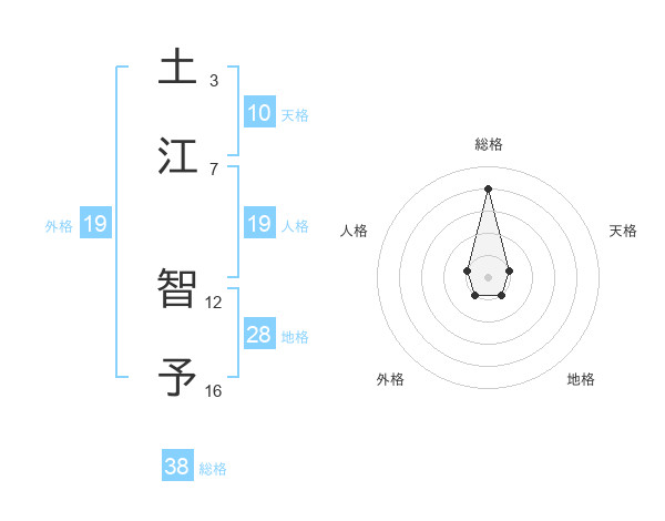 土江 智予さんの総格は38画の4点!