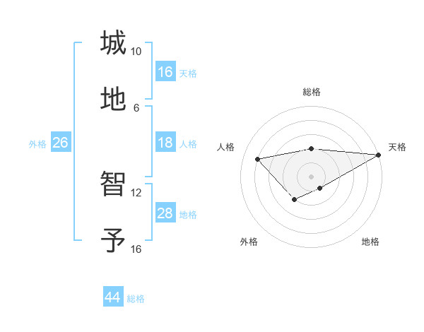 城地 智予さんの総格は44画の2点!