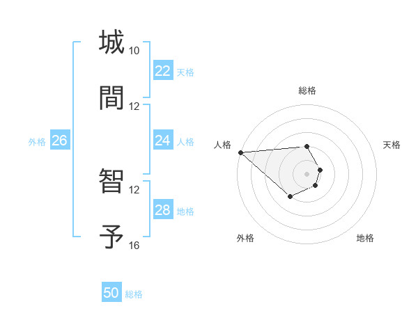 城間 智予さんの総格は50画の2点!