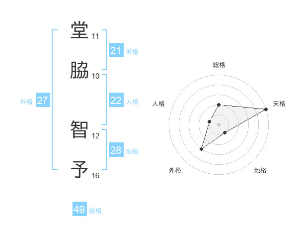 堂脇 智予さんの総格は49画の2点!