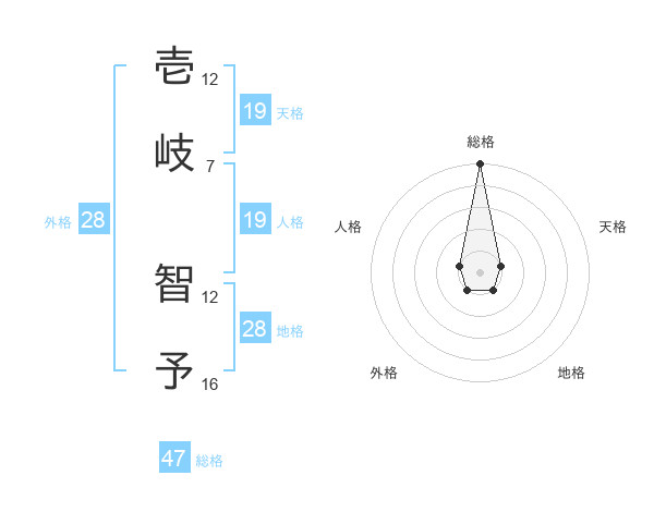 壱岐 智予さんの総格は47画の5点!