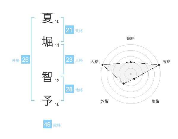 夏堀 智予さんの天格は21画の5点!