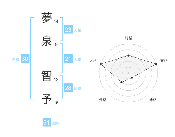 夢泉 智予さんの総格は51画の3点!