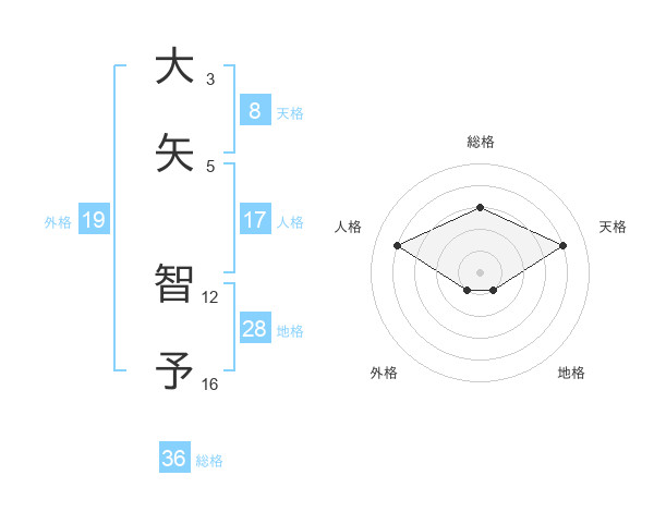 大矢 智予さんの天格は8画の4点!