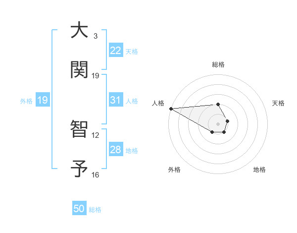 大関 智予さんの総格は50画の2点!