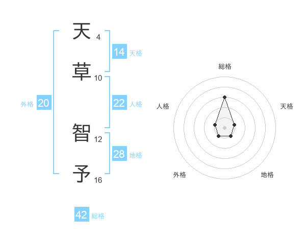 天草 智予さんの総格は42画の3点!
