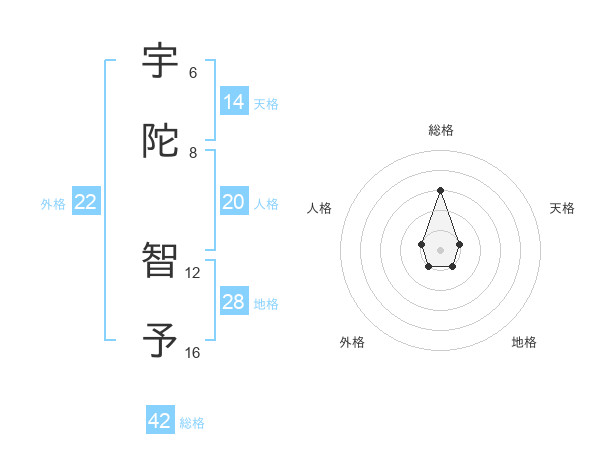 宇陀 智予さんの外格は22画の1点!