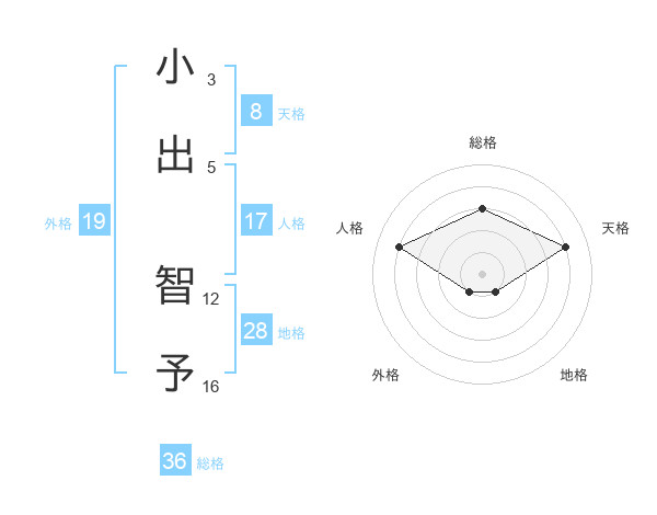 小出 智予さんの天格は8画の4点!