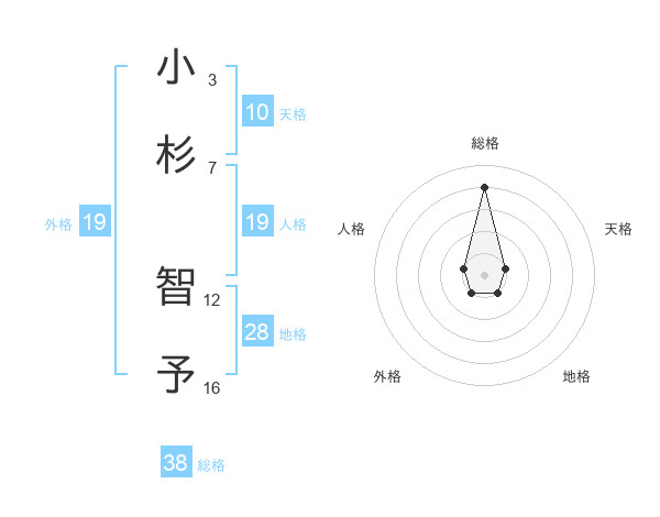 小杉 智予さんの総格は38画の4点!