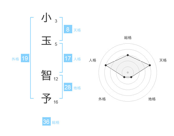 小玉 智予さんの天格は8画の4点!