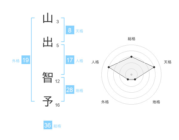 山出 智予さんの地格は28画の1点!