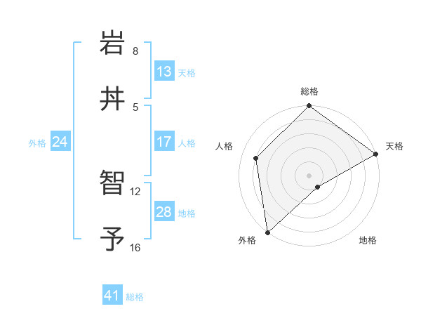 岩丼 智予さんの総格は41画の5点!
