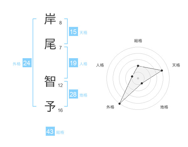 岸尾 智予さんの外格は24画の5点!